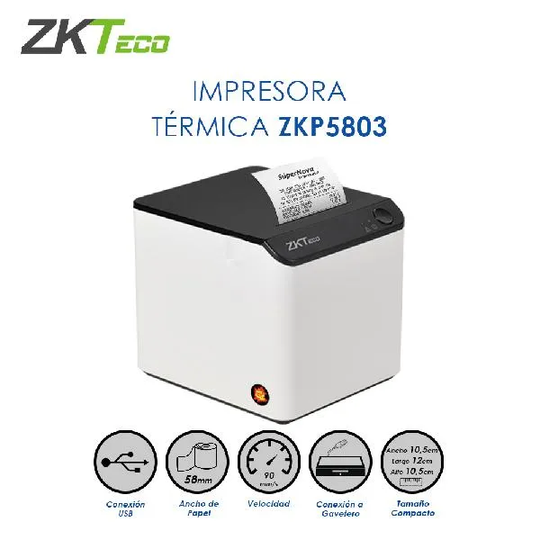 ZkTeco Impresora térmica 80mm, usb, ethernet
